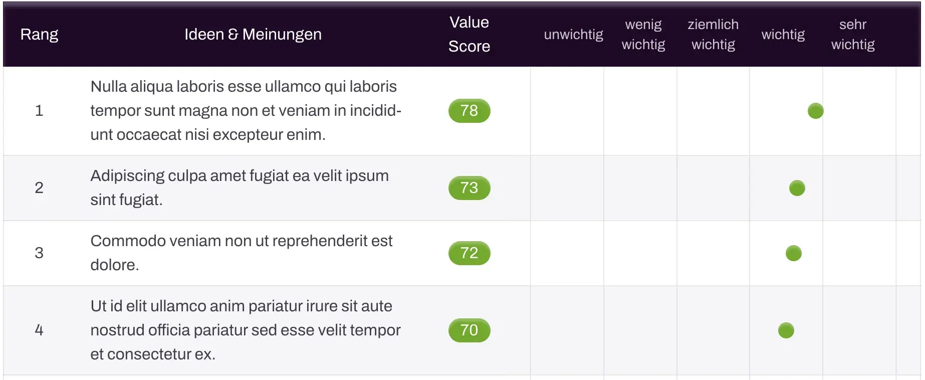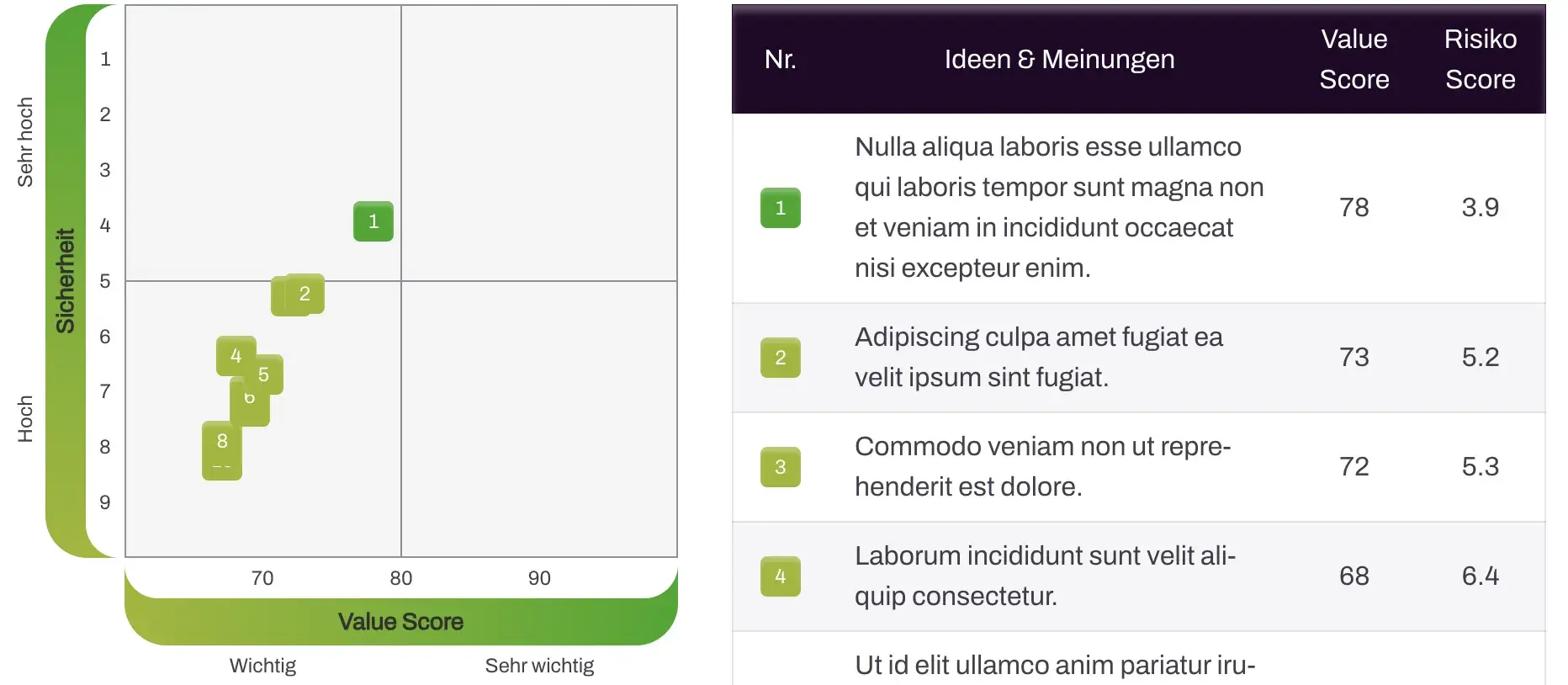 Die Heat Map zeigt sofort, wo hohe Zustimmung auf geringen Widerstand trifft. Ihr Hebel für schnelle Umsetzung.