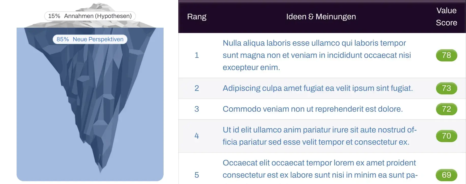 Unsere Heatmap zeigt sofort, wo breite Zustimmung herrscht – Ihr Hebel für schnelle Umsetzung.